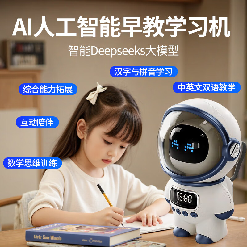 梦巴奇ai对话智能机器人儿童玩具3岁6-10男孩生日礼物8-12女孩4学习闹钟 AI白太空人丨六大模型+永久免费 豆包deepseek7-14男女童5小朋友