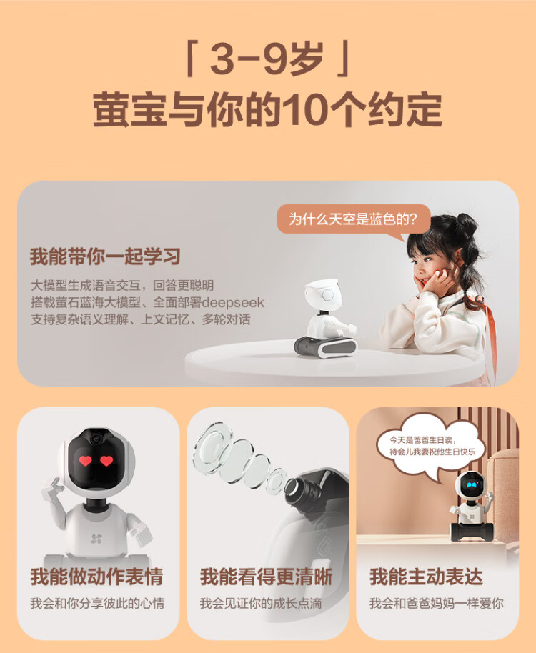 商品名称:萤石RK2PRO 智能儿童陪护机器人 京东JoyInside 全新AI大模型 孩子早教学习 拟人化情绪交互 标准版