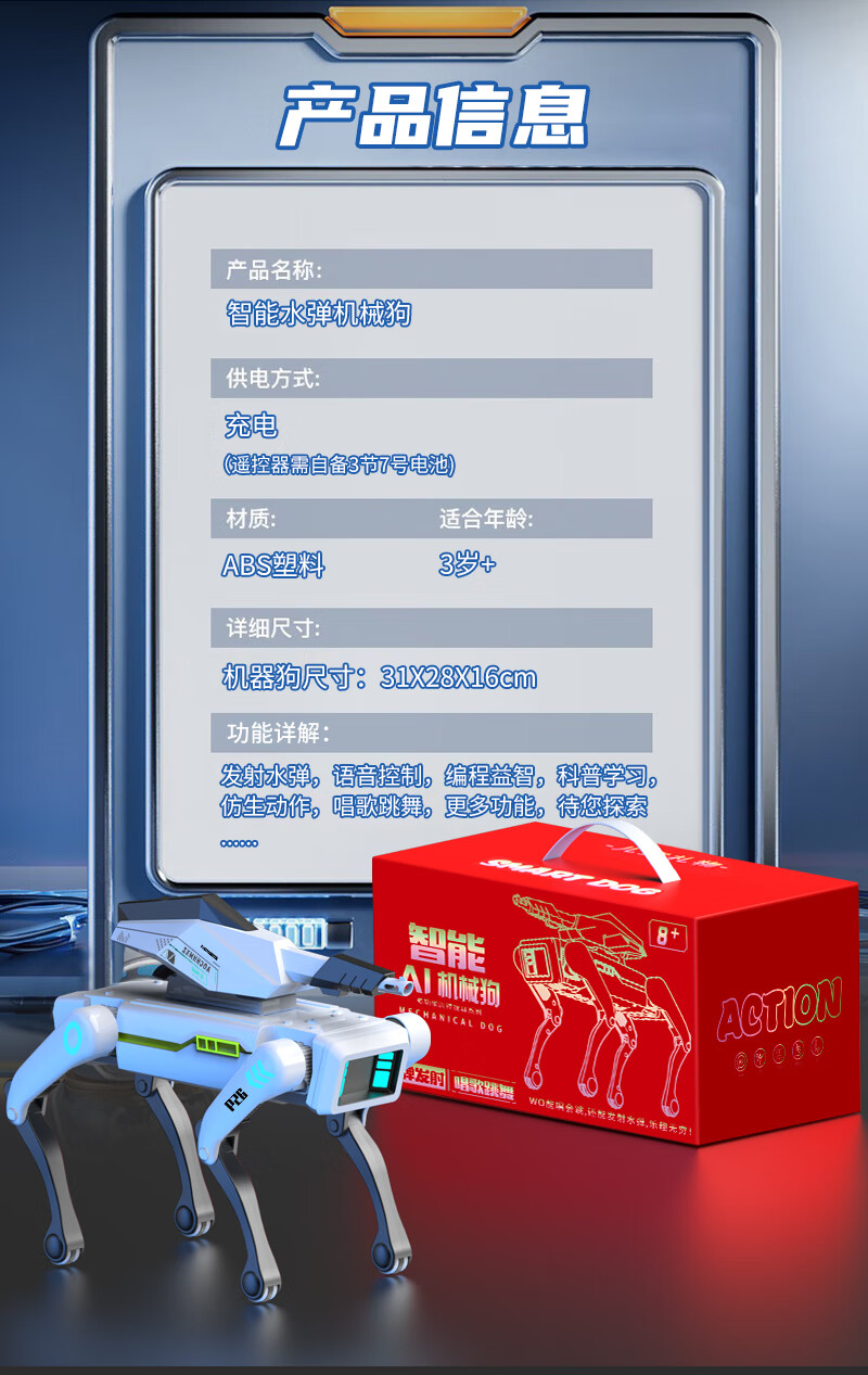商品名称:科学怪兽机器狗儿童玩具男孩智能ai编程人生日礼物遥控汽车6-8-12岁