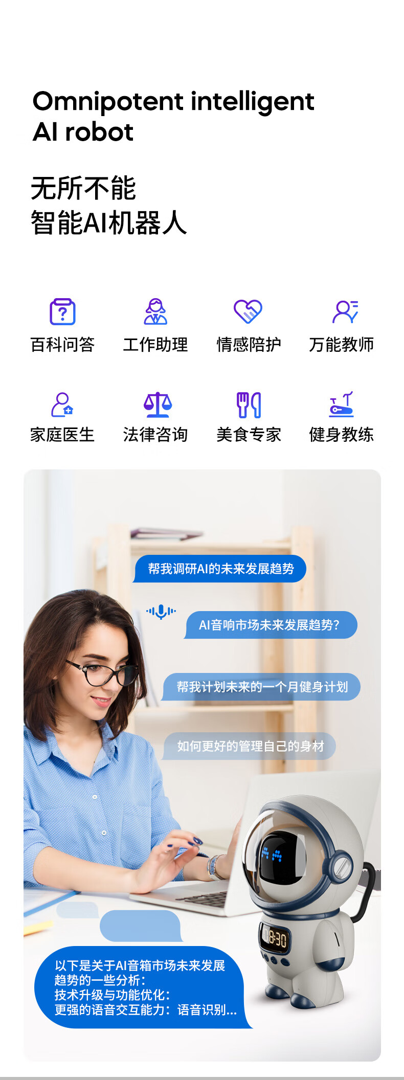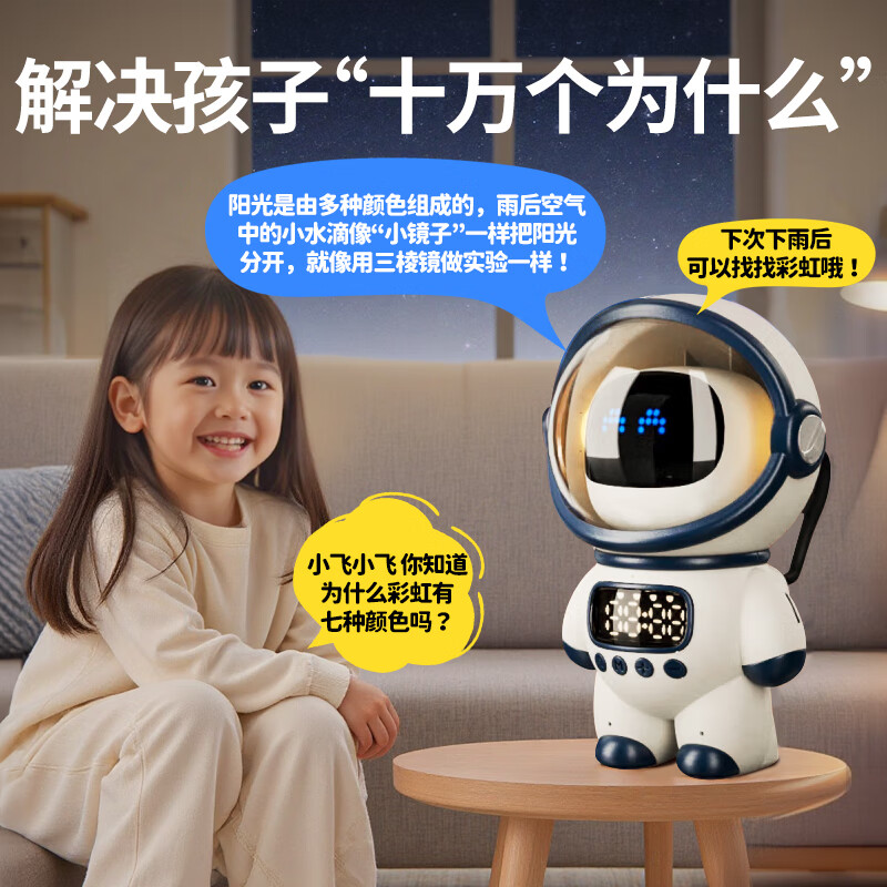 商品名称:梦巴奇ai对话智能机器人儿童玩具3岁6-10男孩生日礼物8-12女孩4学习闹钟 AI白太空人丨六大模型+永久免费 豆包deepseek7-14男女童5小朋友