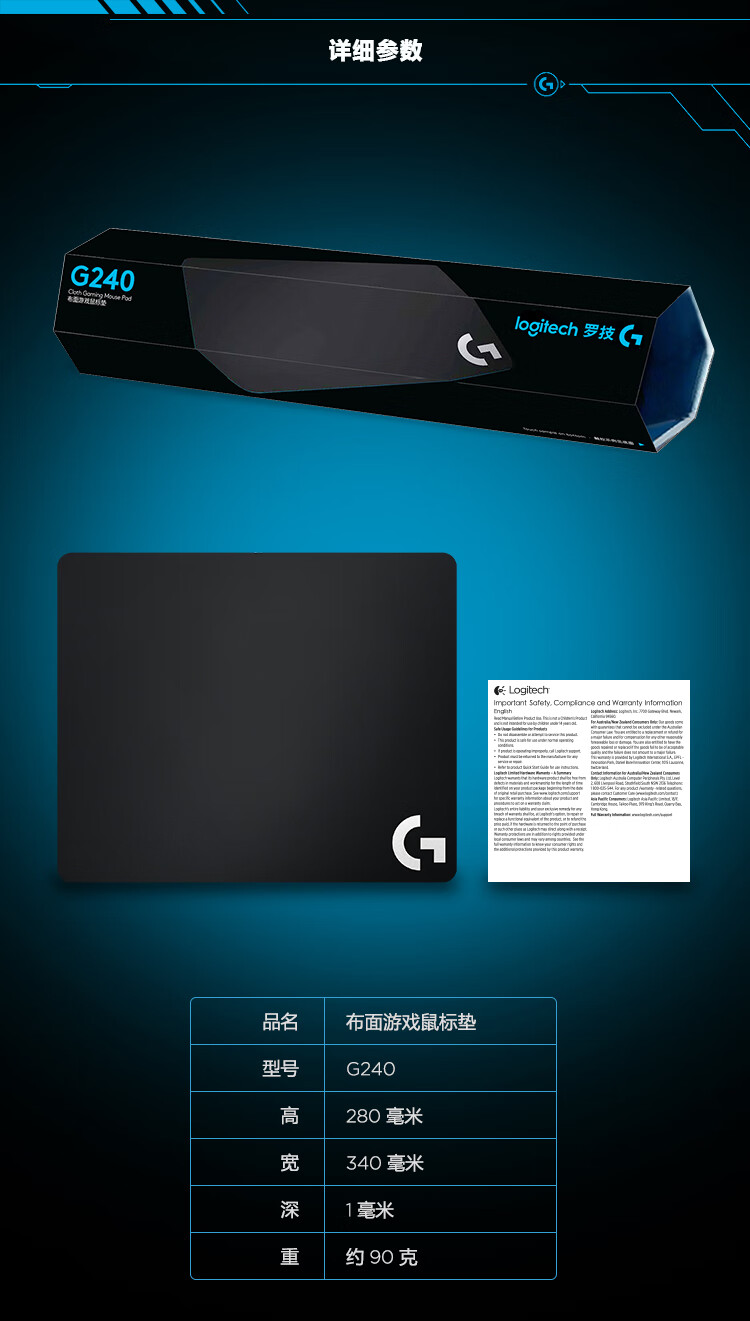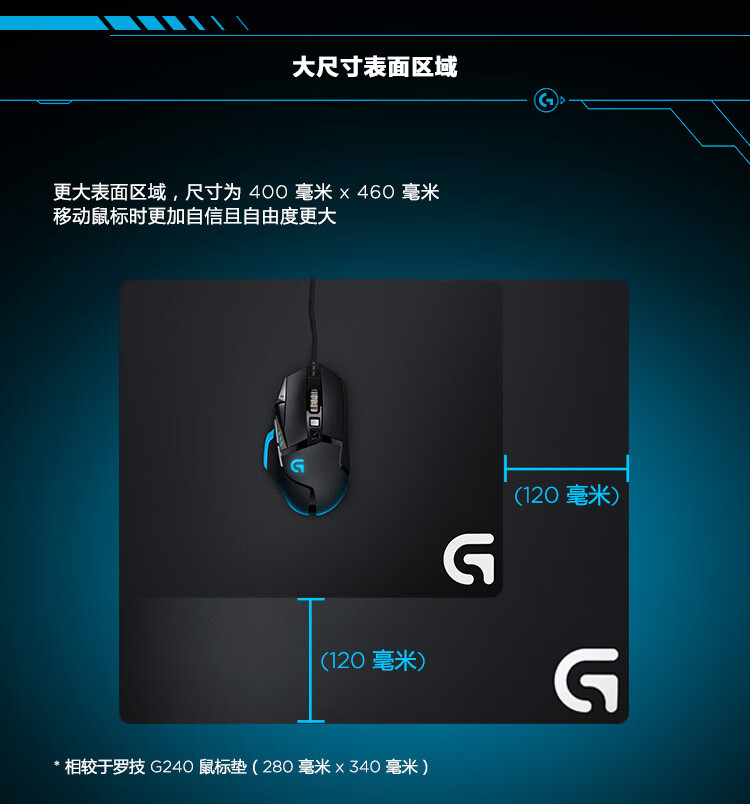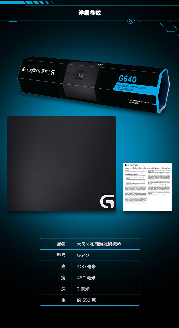 商品名称:罗技(G) G640 布面游戏电竞鼠标垫 稳定顺滑 FPS/MOBA游戏电竞办公桌面鼠标垫 G740(G640加厚版)