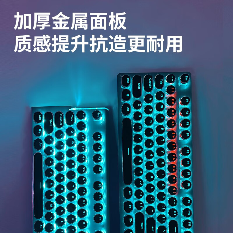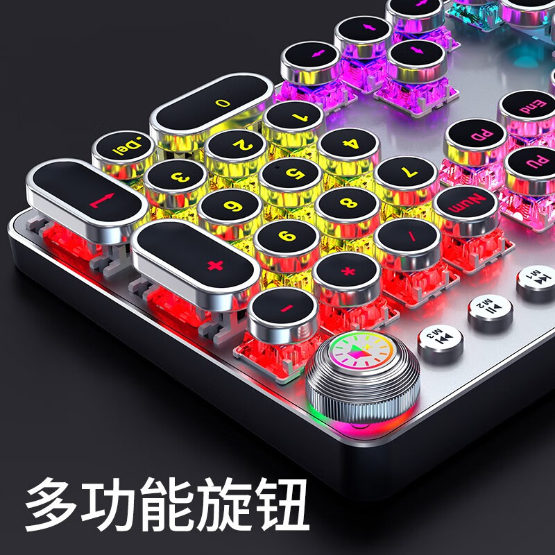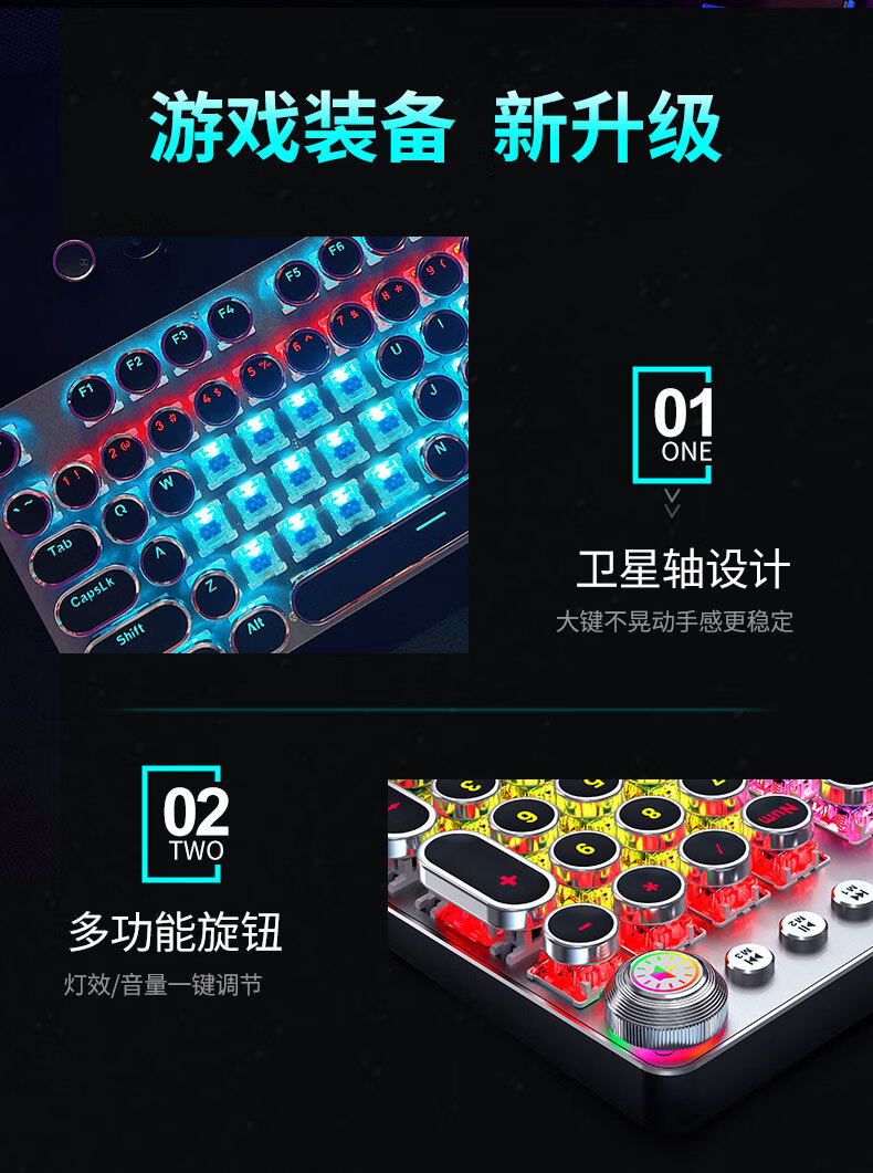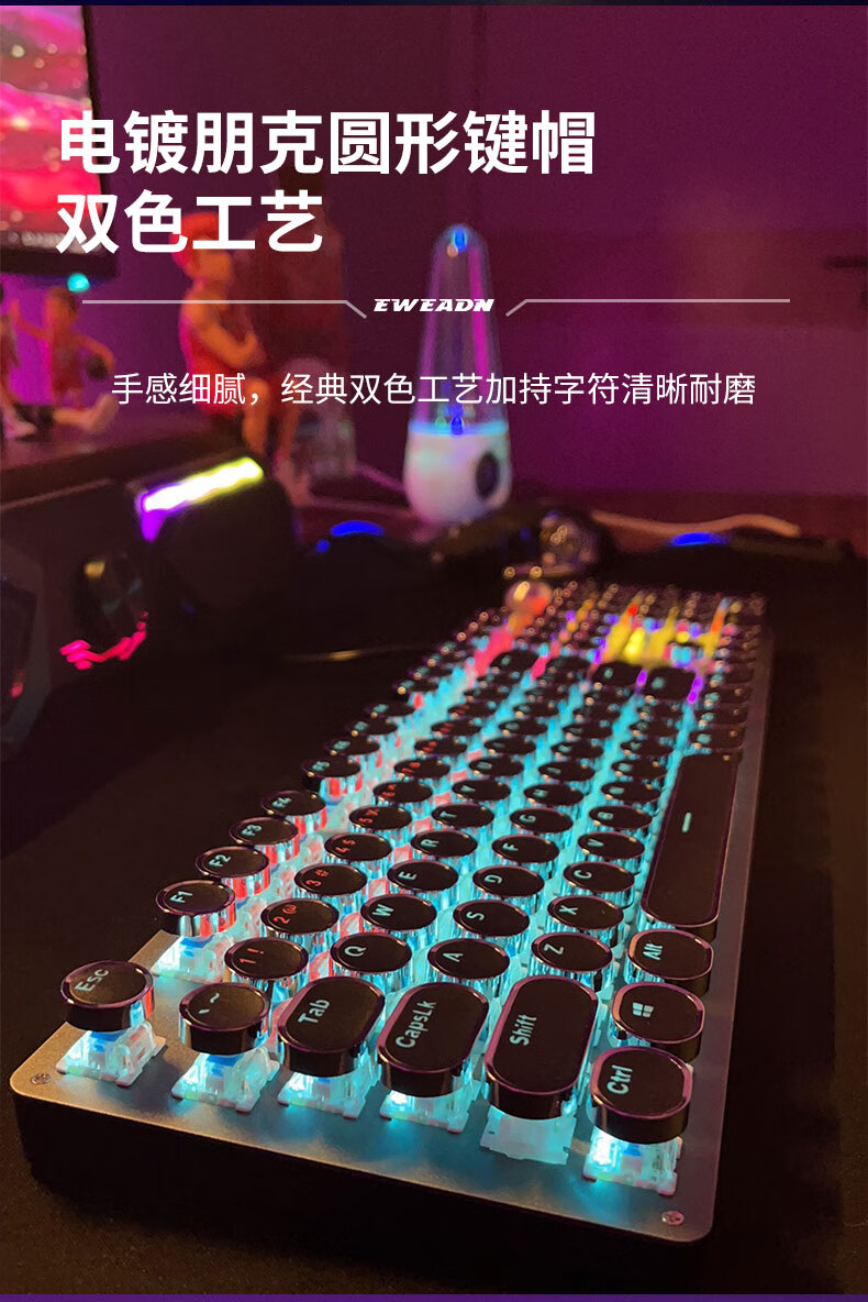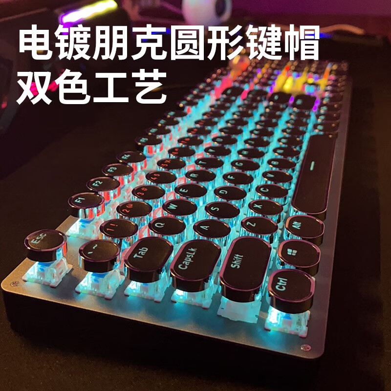 商品名称:前行者电竞游戏机械键盘鼠标套装台式电脑笔记本耳机三件套蒸汽朋克复古圆键键鼠四件套外接外设 金属黑朋克【混光-青轴】+鼠标+耳机+发光大桌垫