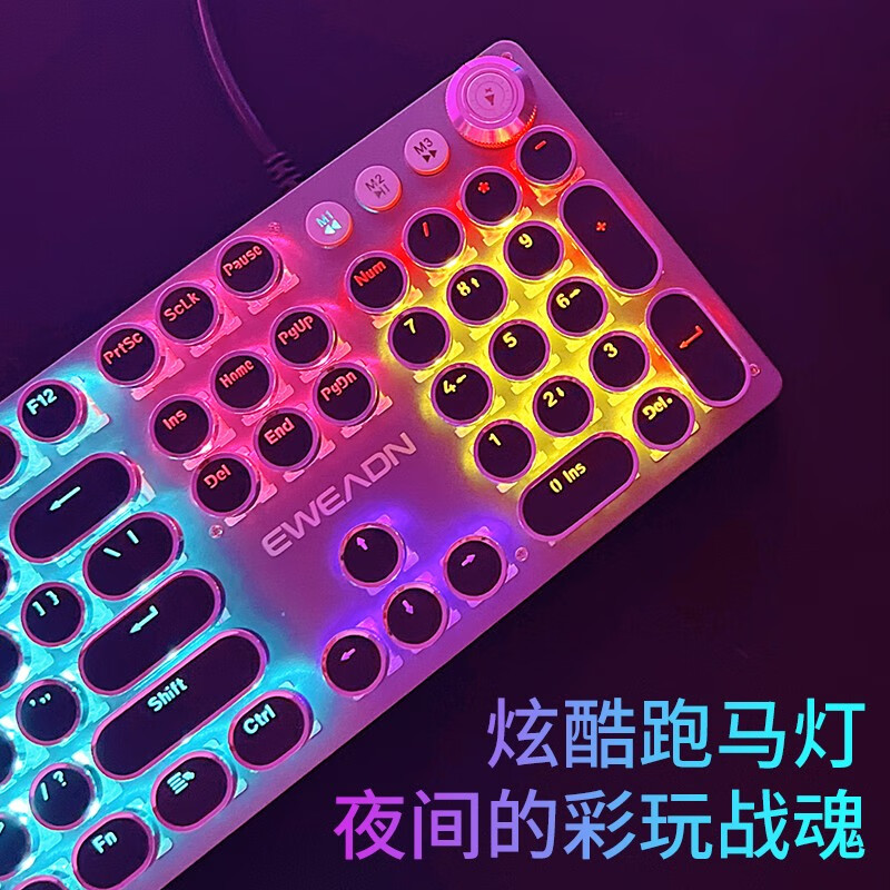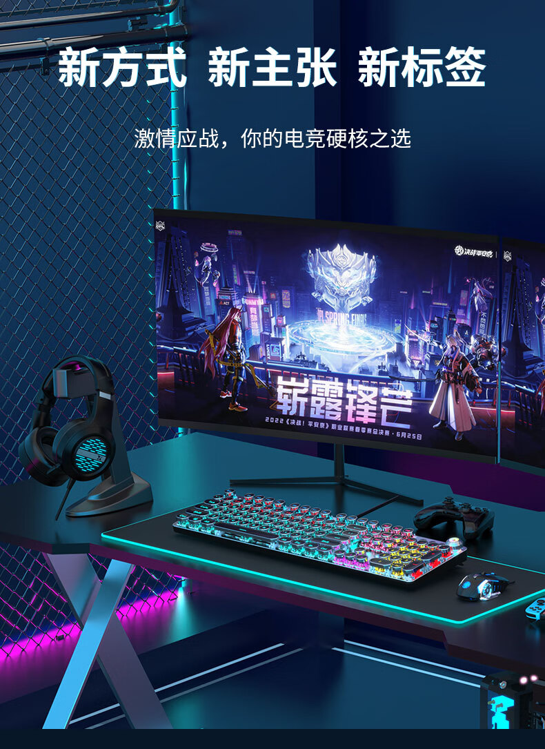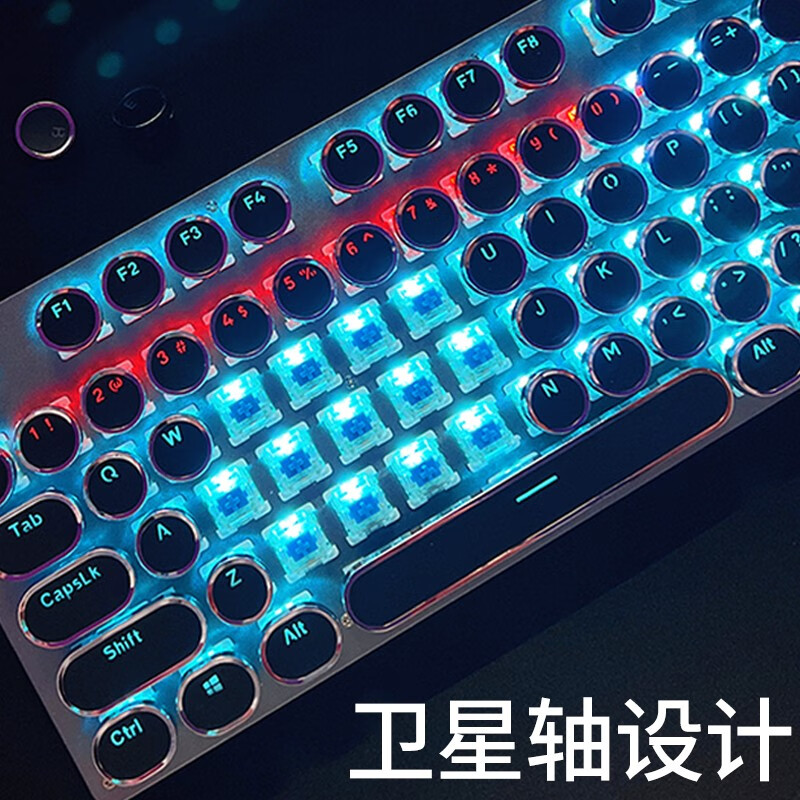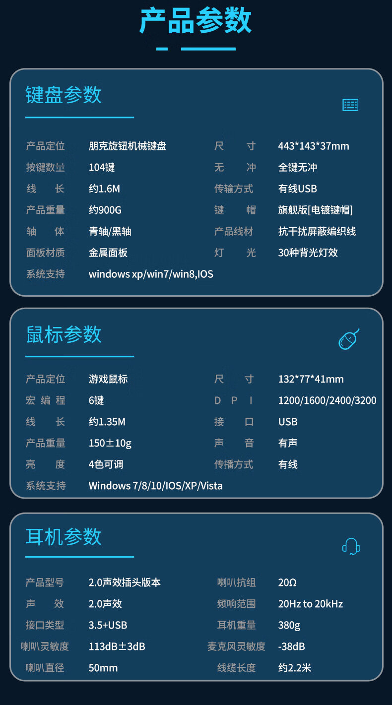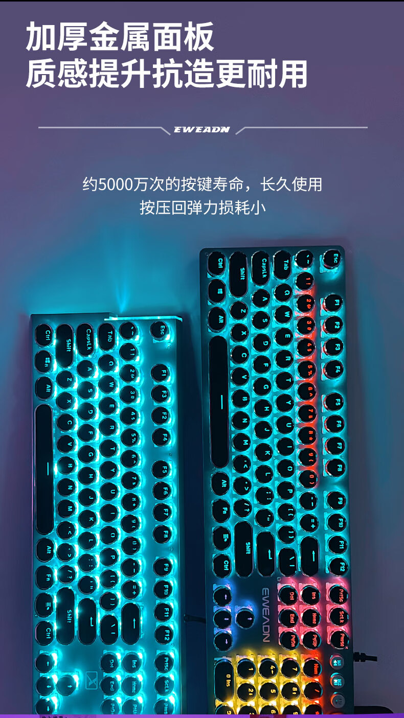 商品名称:前行者电竞游戏机械键盘鼠标套装台式电脑笔记本耳机三件套蒸汽朋克复古圆键键鼠四件套外接外设 金属黑朋克【混光-青轴】+鼠标+耳机+发光大桌垫