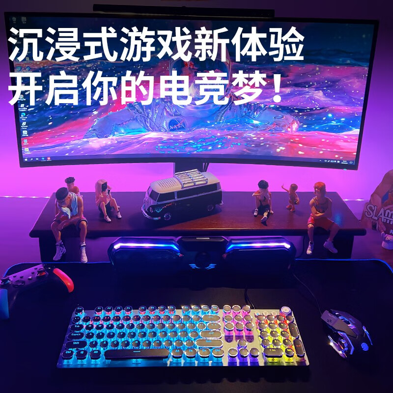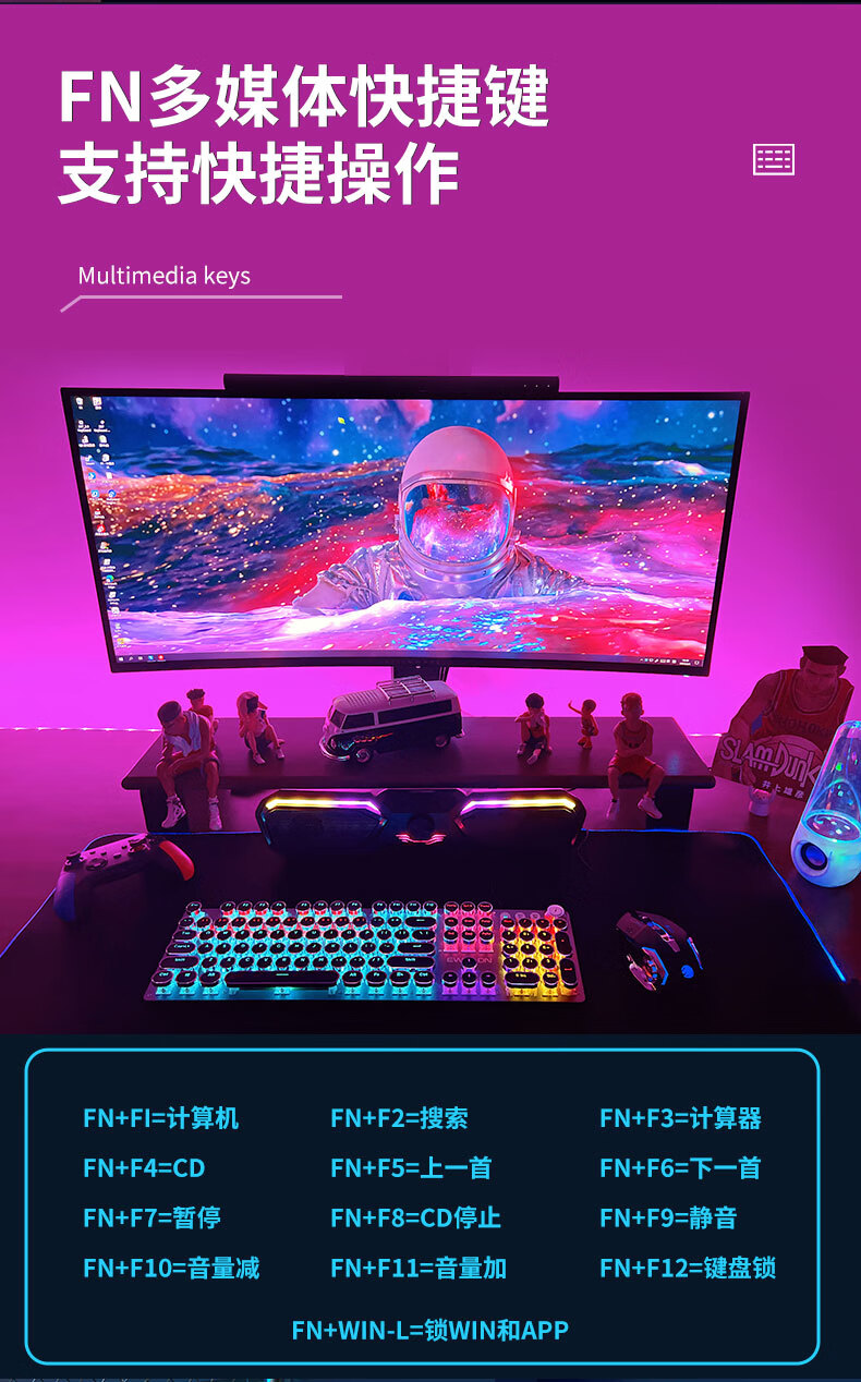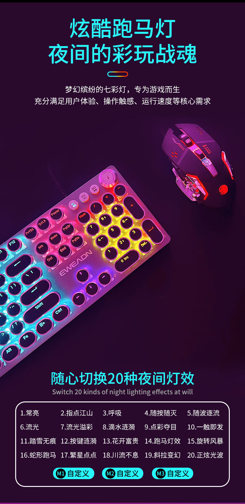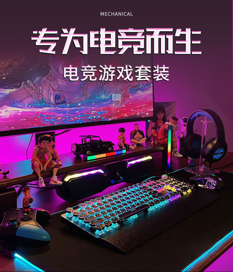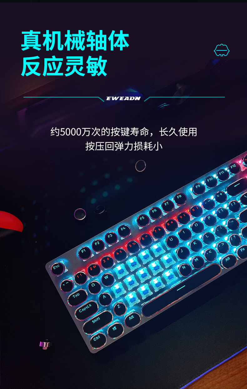 商品名称:前行者电竞游戏机械键盘鼠标套装台式电脑笔记本耳机三件套蒸汽朋克复古圆键键鼠四件套外接外设 金属黑朋克【混光-青轴】+鼠标+耳机+发光大桌垫