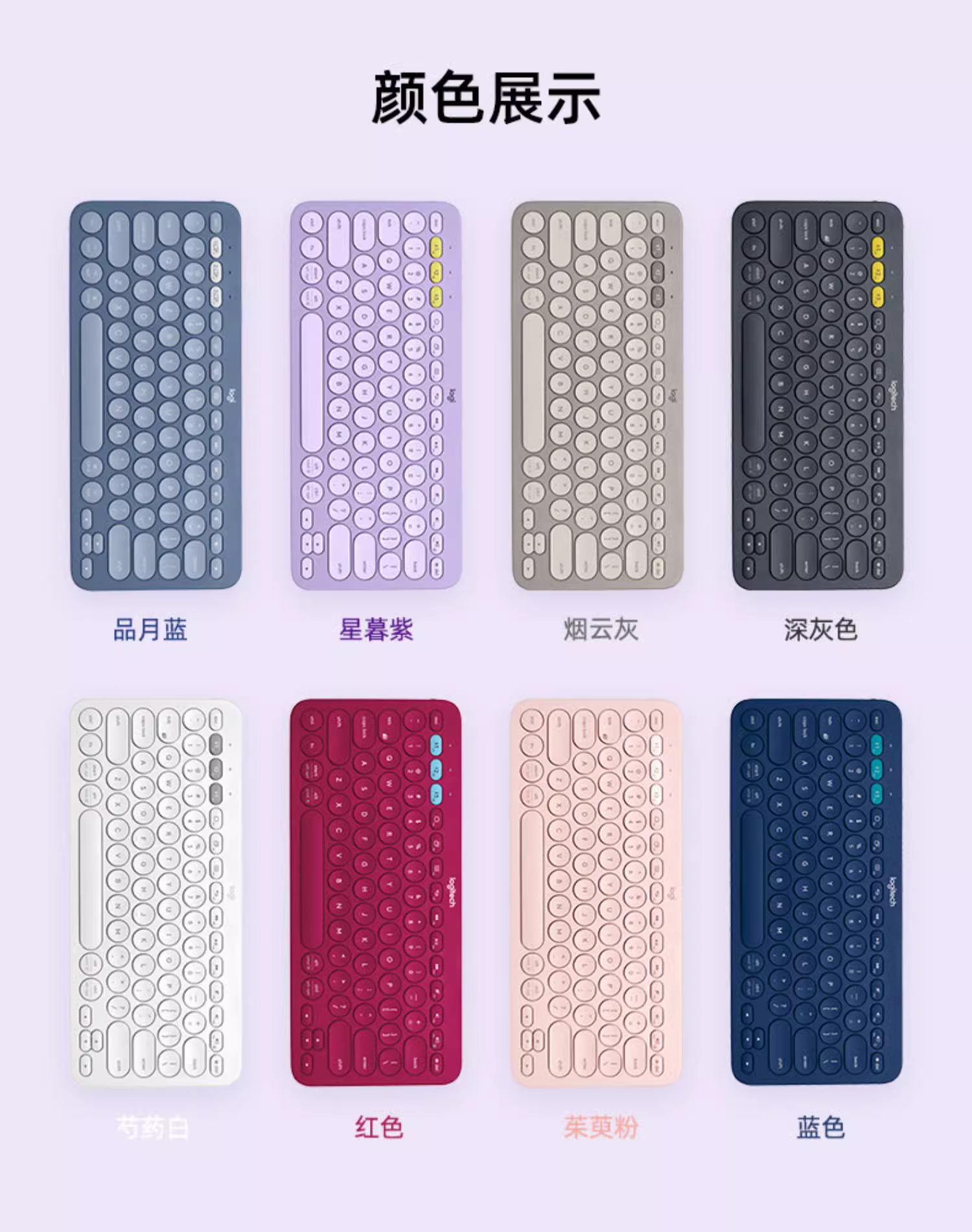 商品名称:罗技(Logitech) 无线蓝牙键盘K380多设备轻薄蓝牙鹅卵石鼠标键盘便携小巧手机平板通用 【多设备便携蓝牙】K380 紫