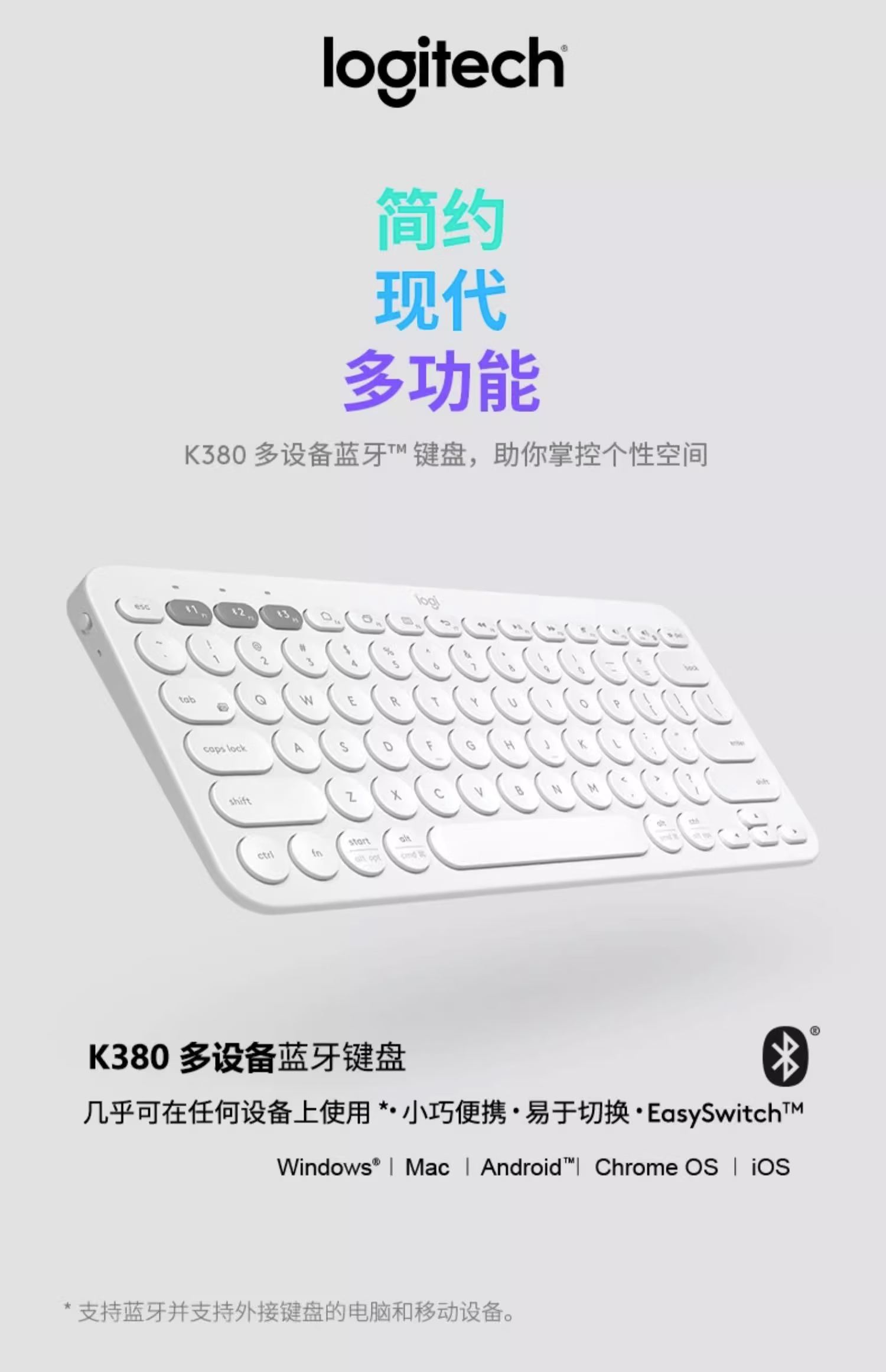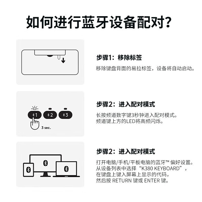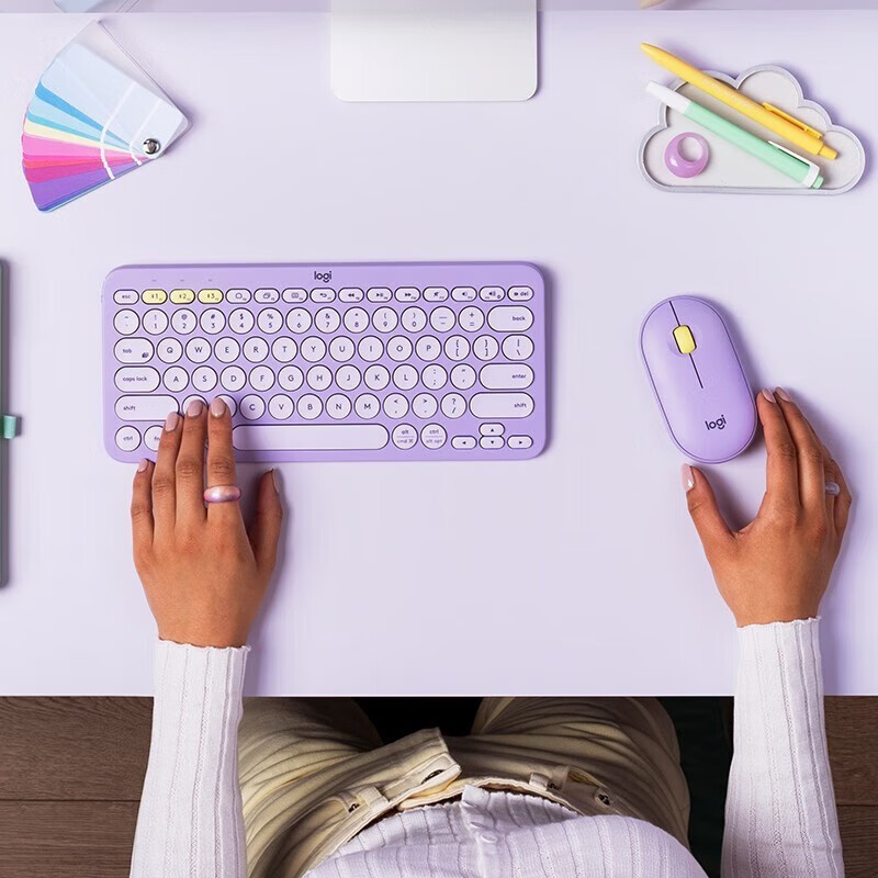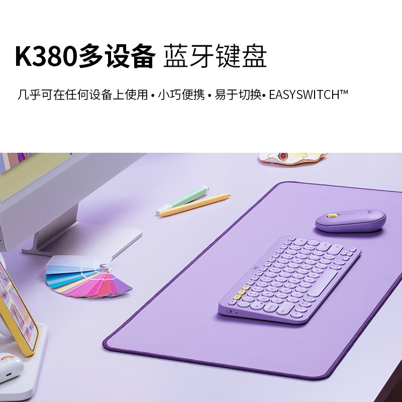 罗技(Logitech) 无线蓝牙键盘K380多设备轻薄蓝牙鹅卵石鼠标键盘便携小巧手机平板通用 【多设备便携蓝牙】K380 紫
