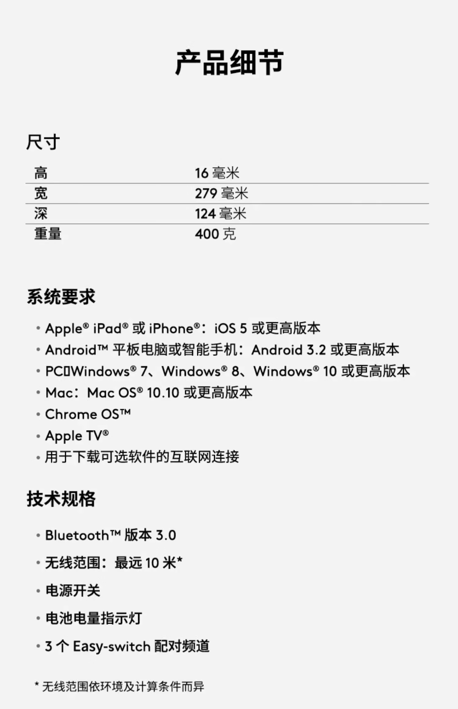 • 连接方式:蓝牙