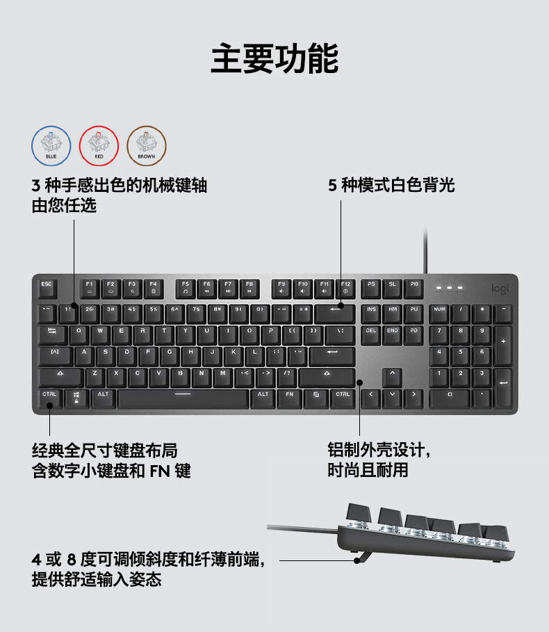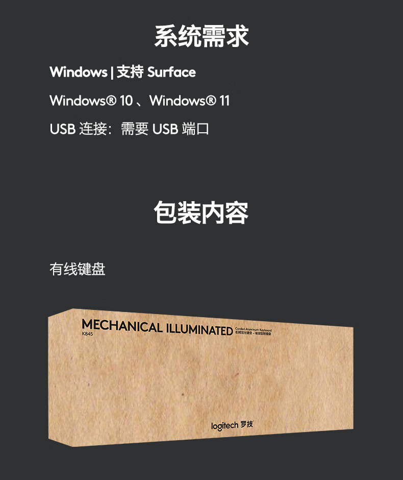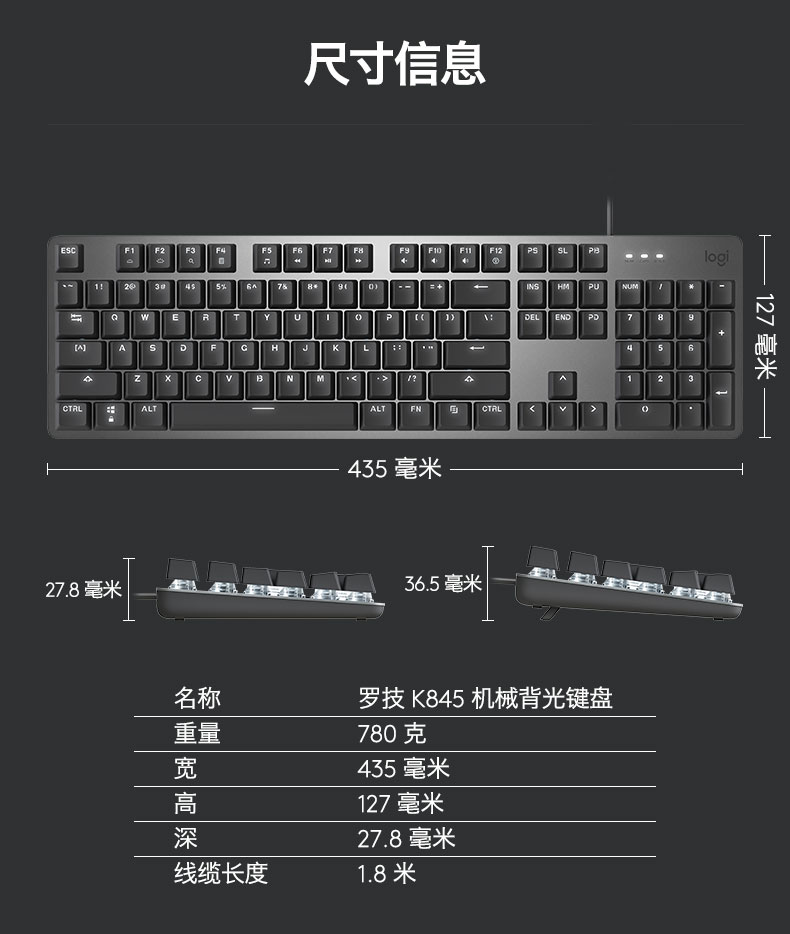 商品名称:罗技(Logitech) K845 有线机械键盘 游戏电竞键盘 电脑办公键盘 【K845】TTC青轴