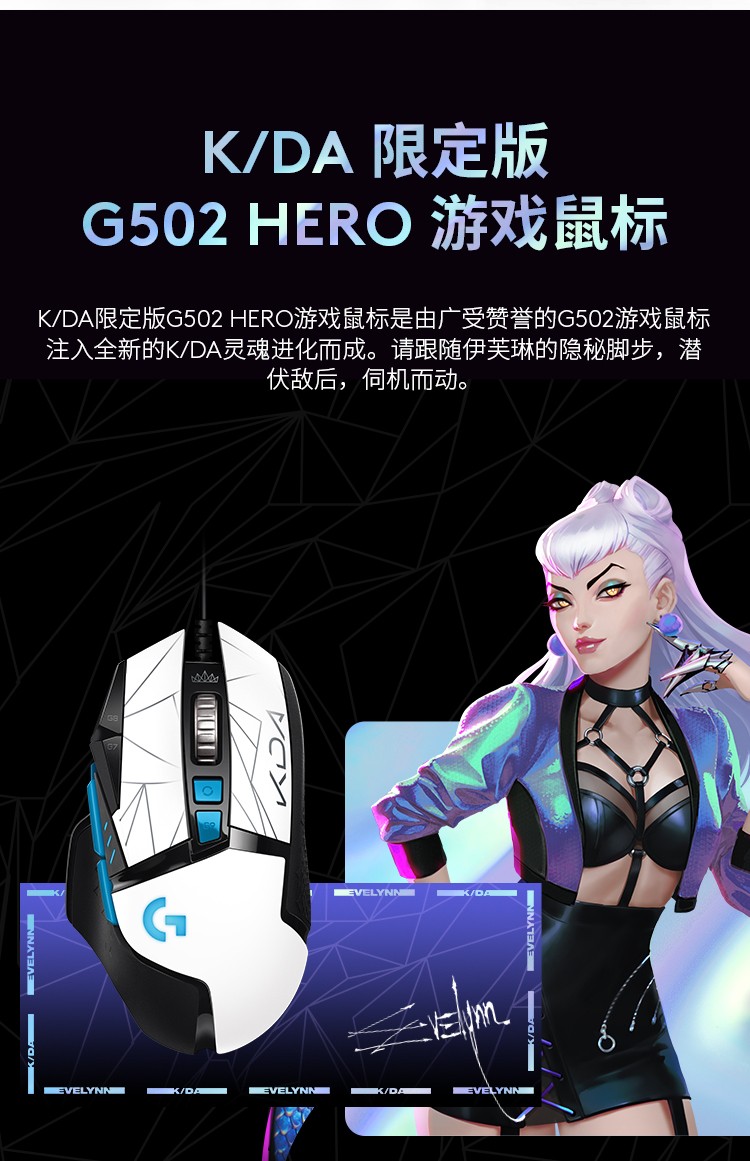罗技(G) G502 KDA 英雄联盟LOL女团定制版有线鼠标 高性能HERO引擎电竞RGB逻辑鼠标 G502HERO KDA版