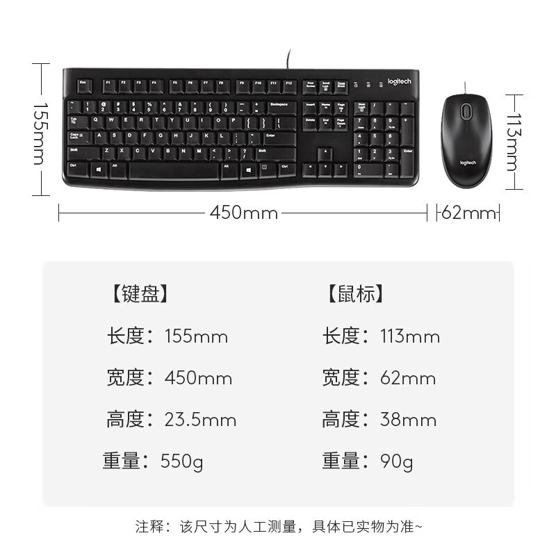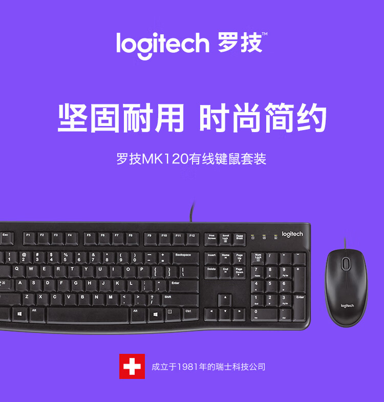 罗技(Logitech) MK120 键鼠套装 有线键鼠套装 办公键鼠套装 全尺寸104键 黑色