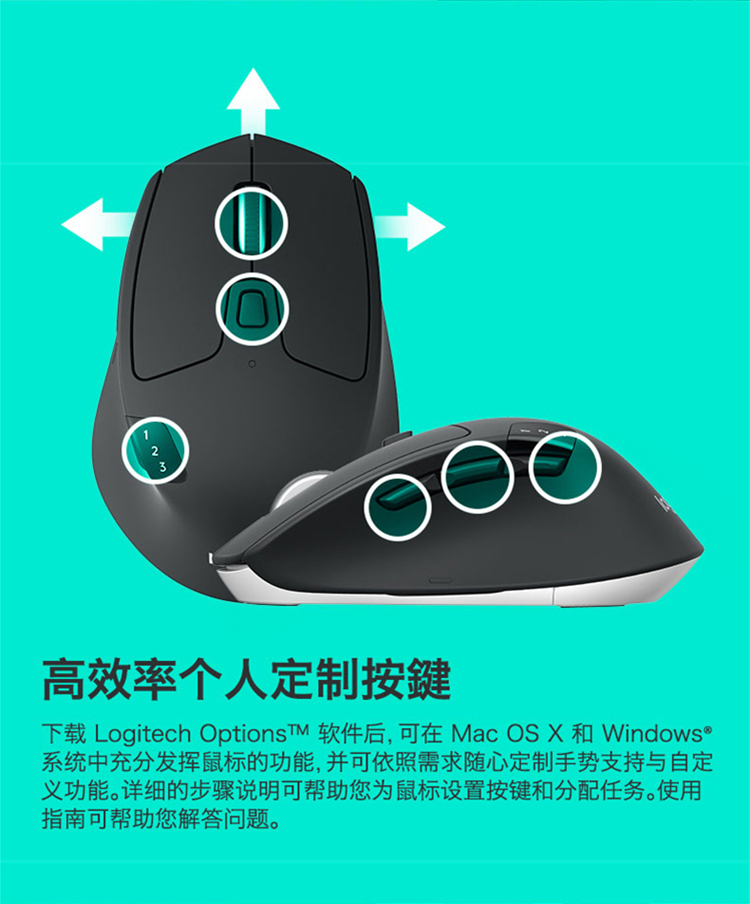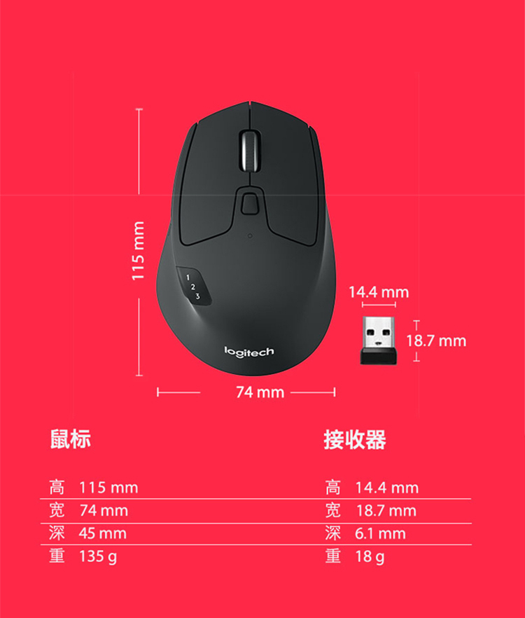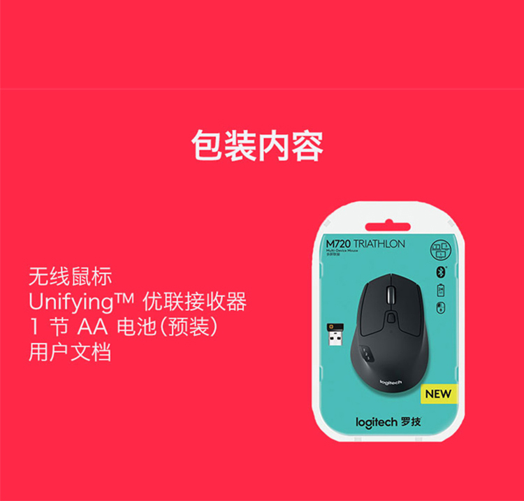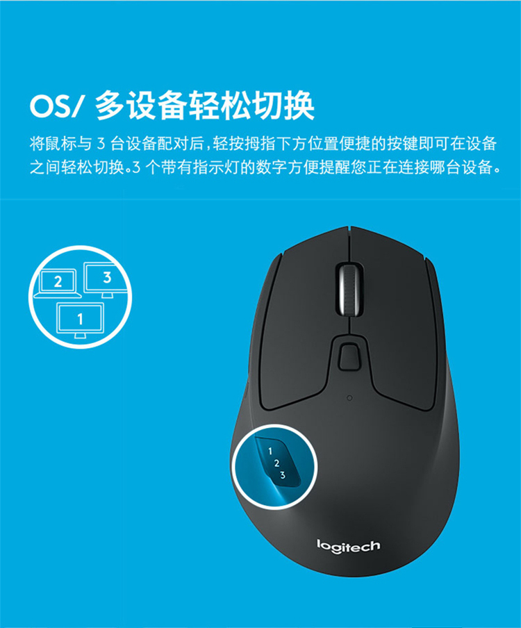 商品名称:罗技(Logitech) M720 蓝牙优联双模家用办公无线鼠标 蓝牙鼠标 侧键 商务大手鼠标 舒适