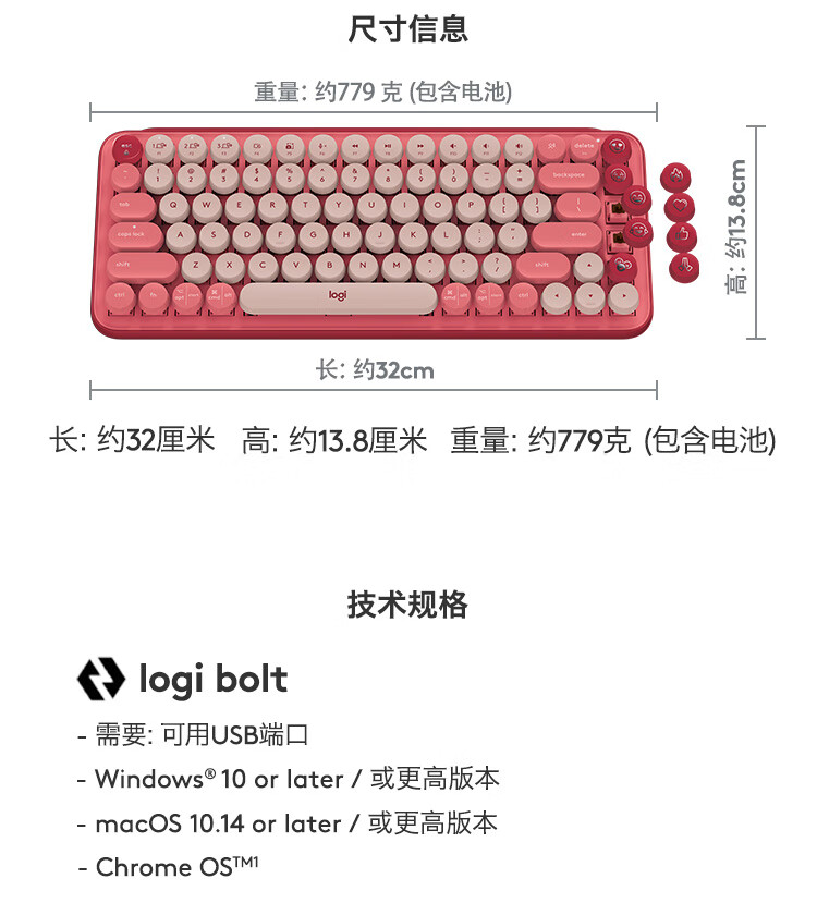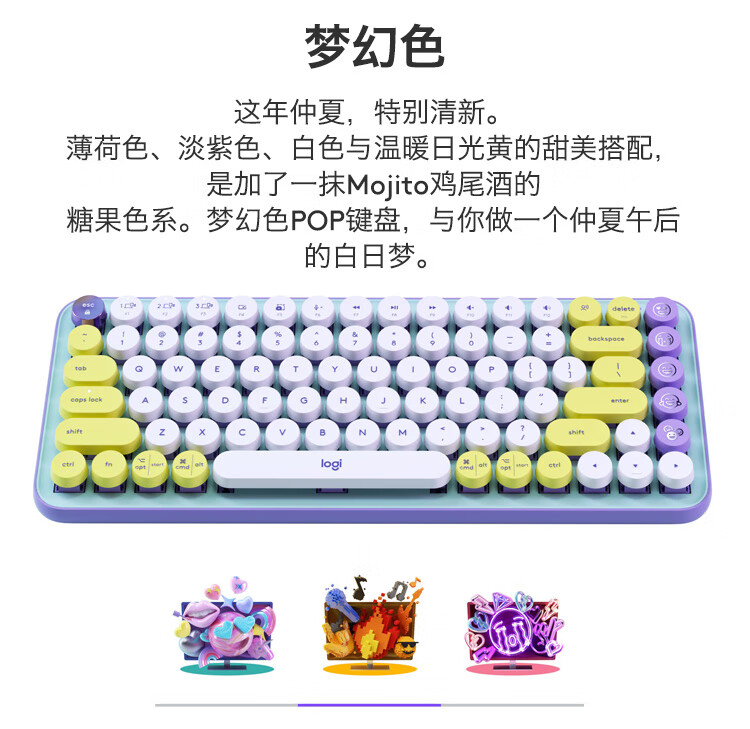 商品名称:罗技(Logitech)POP KEYS泡泡无线蓝牙机械键盘IP款礼物个性创意办公键盘送女友 沃梵 pop 电幻粉套装