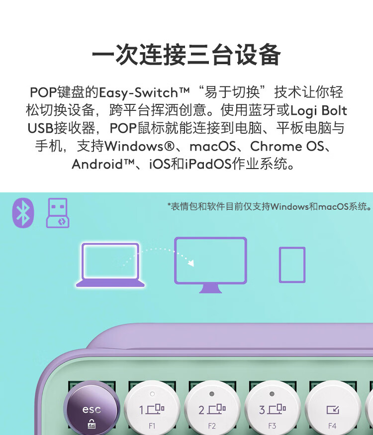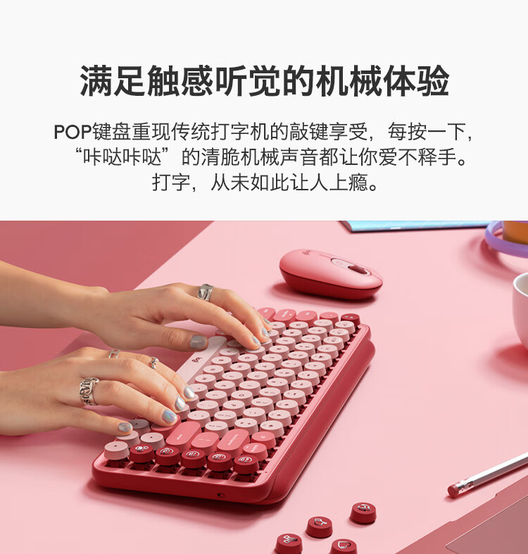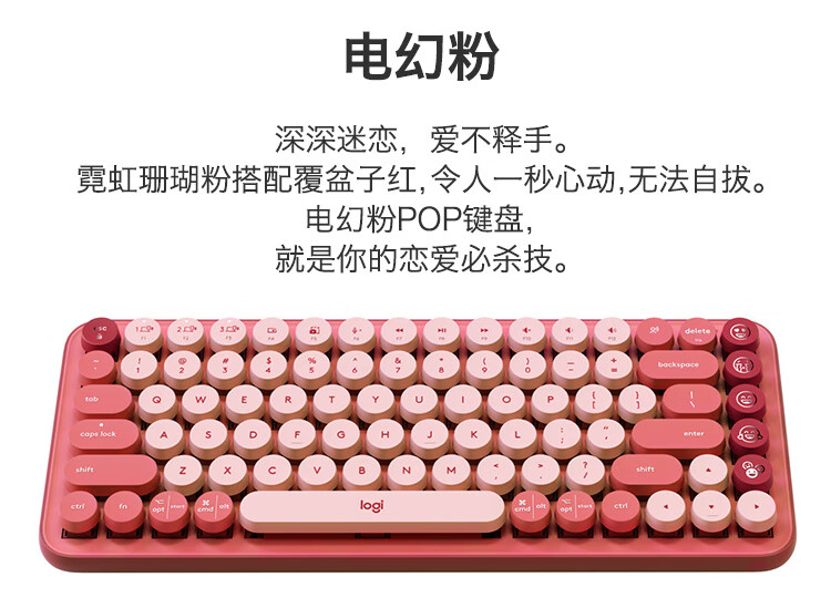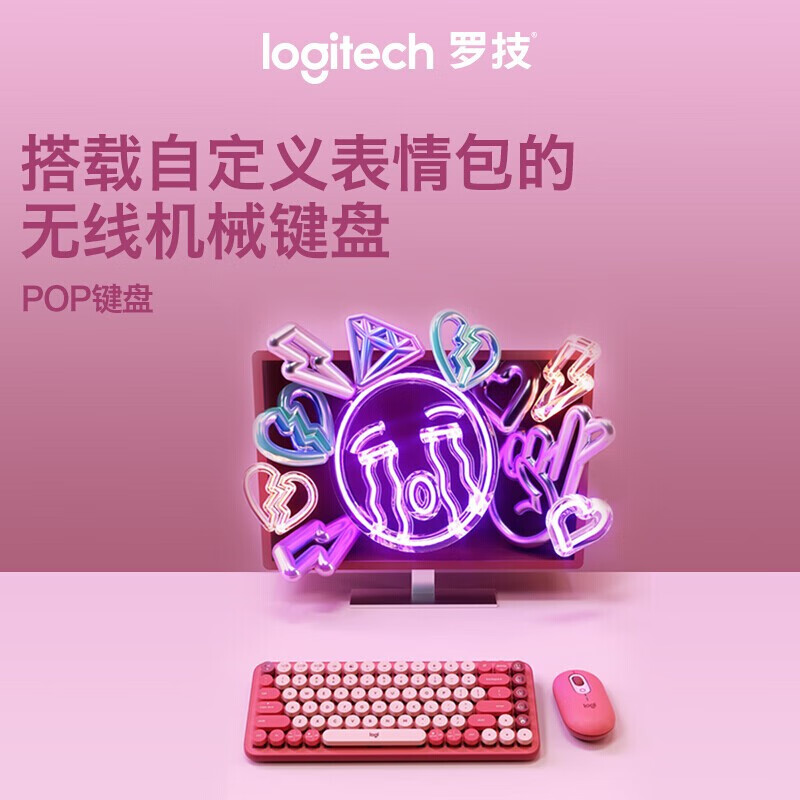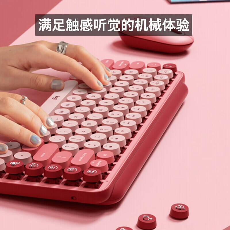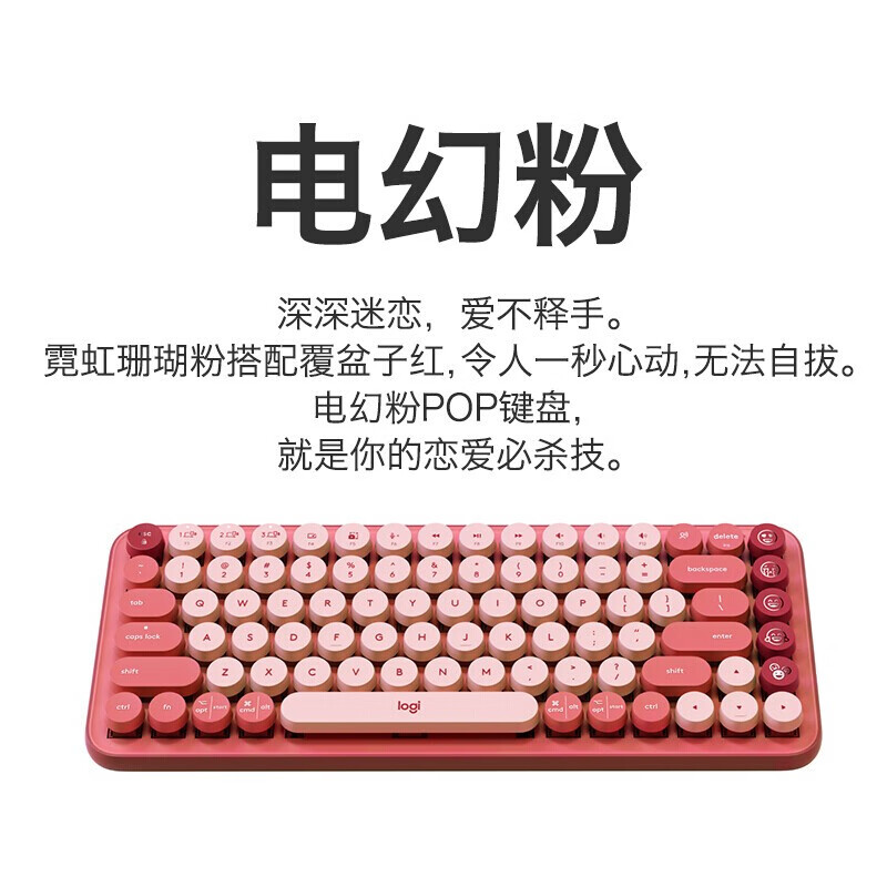 罗技(Logitech)POP KEYS泡泡无线蓝牙机械键盘IP款礼物个性创意办公键盘送女友 沃梵 pop 电幻粉套装