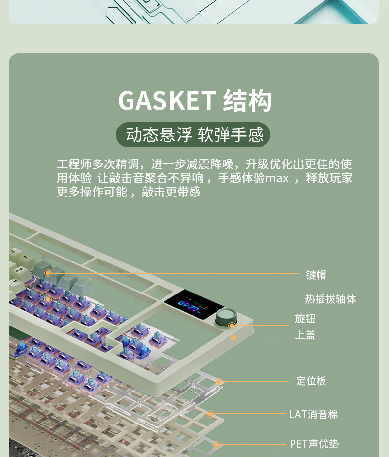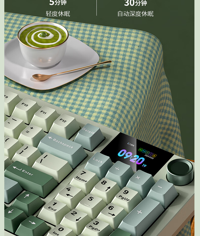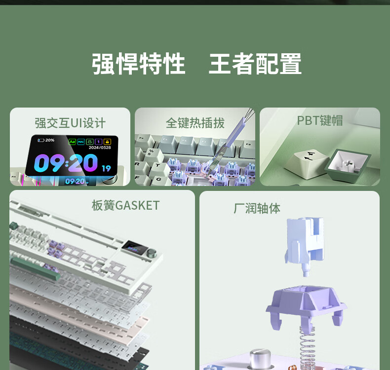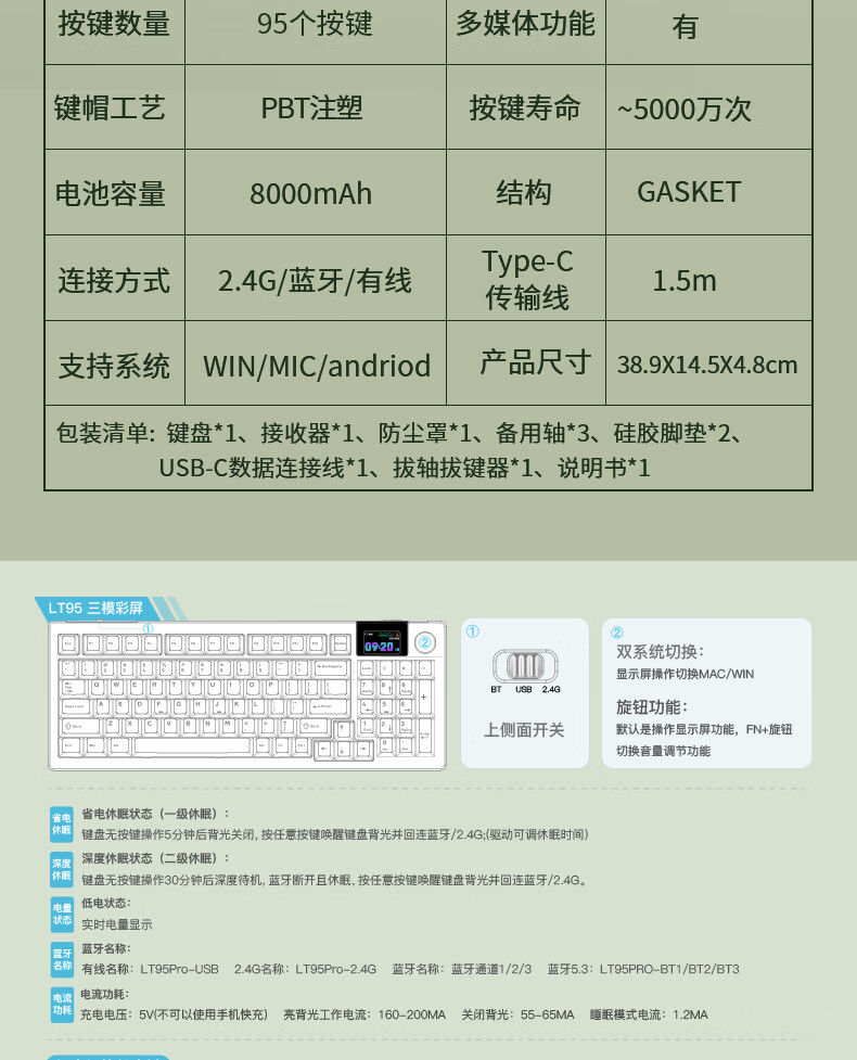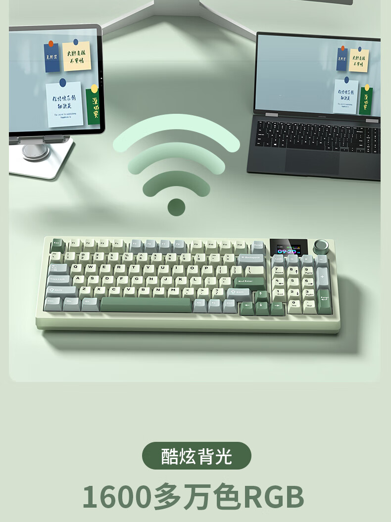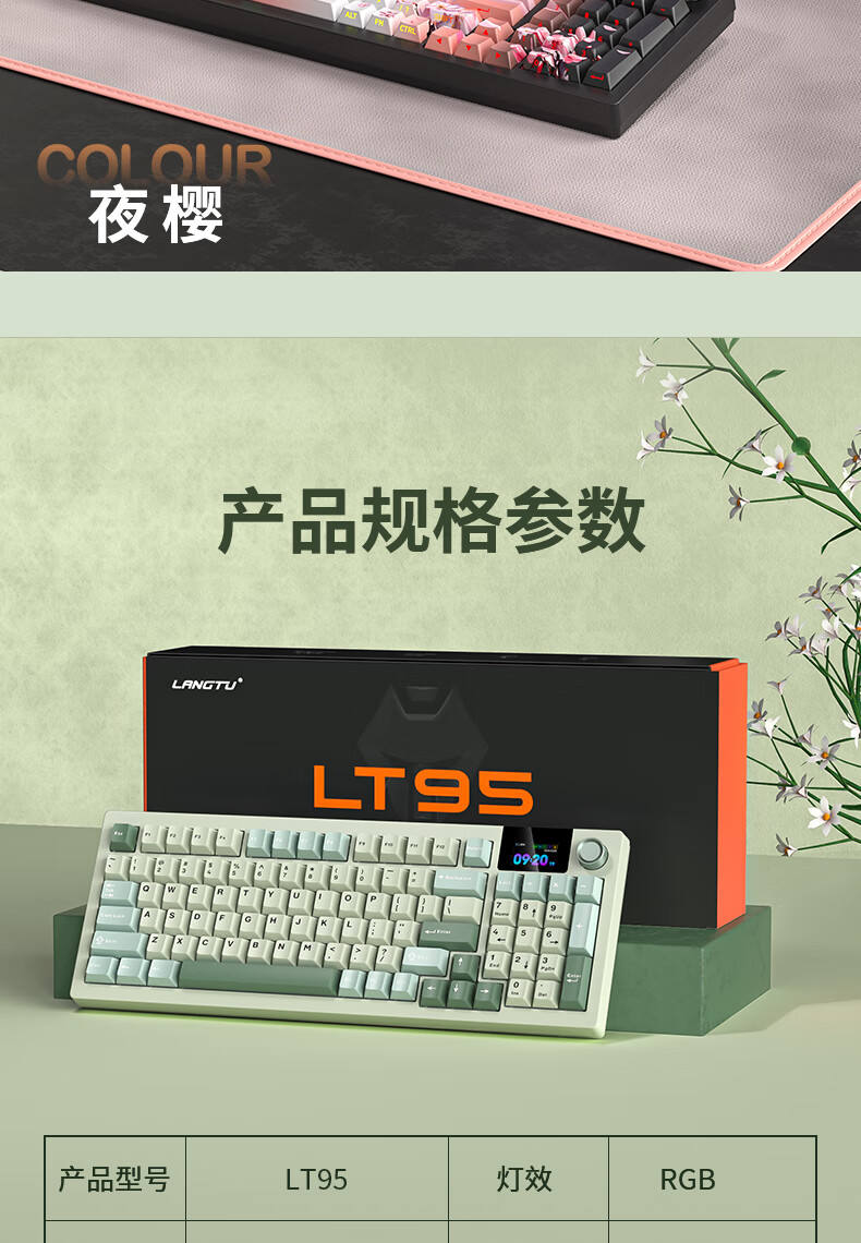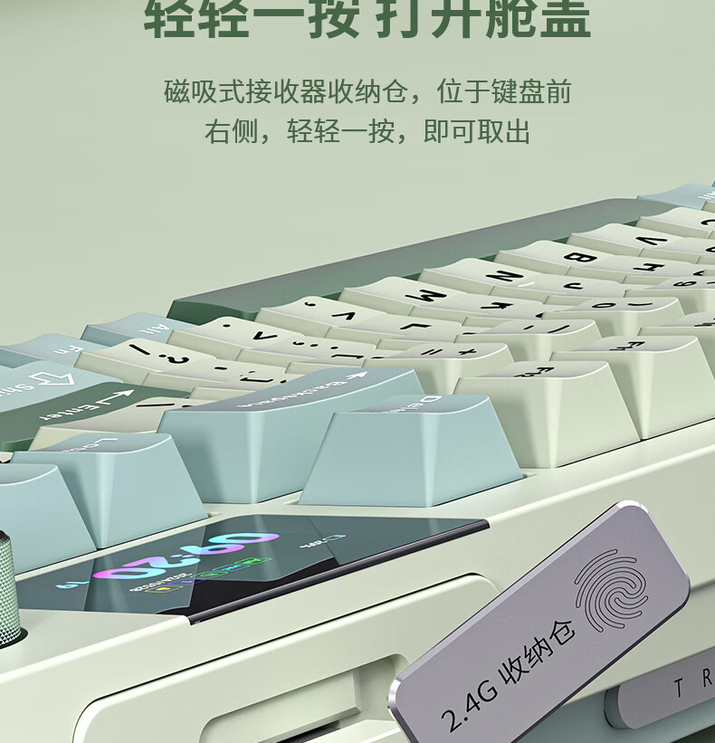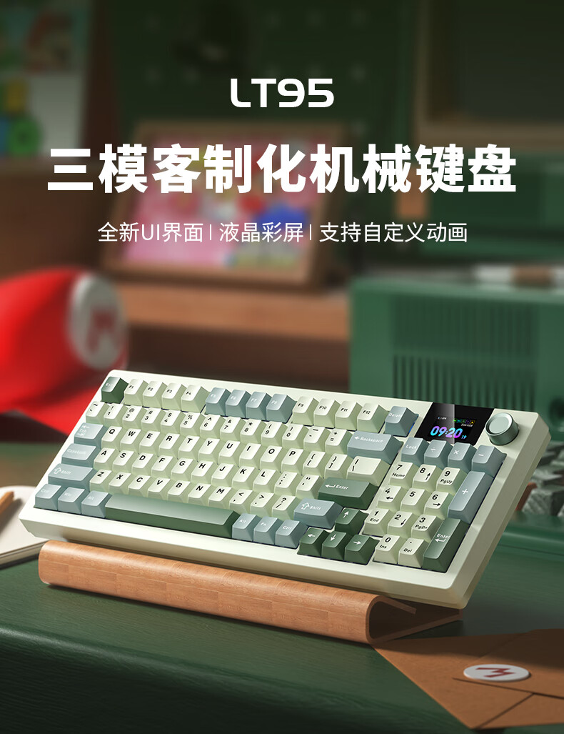 商品名称:狼途LT95翠微 有线/无线/蓝牙三模机械键盘 Gasket结构 RGB灯效 液晶彩屏 马卡龙轴
