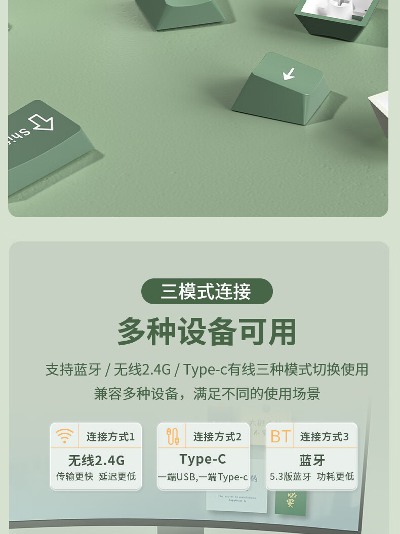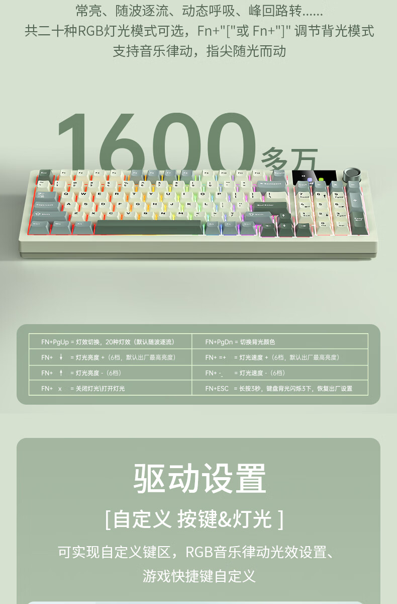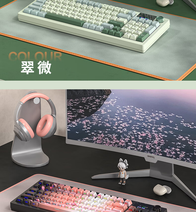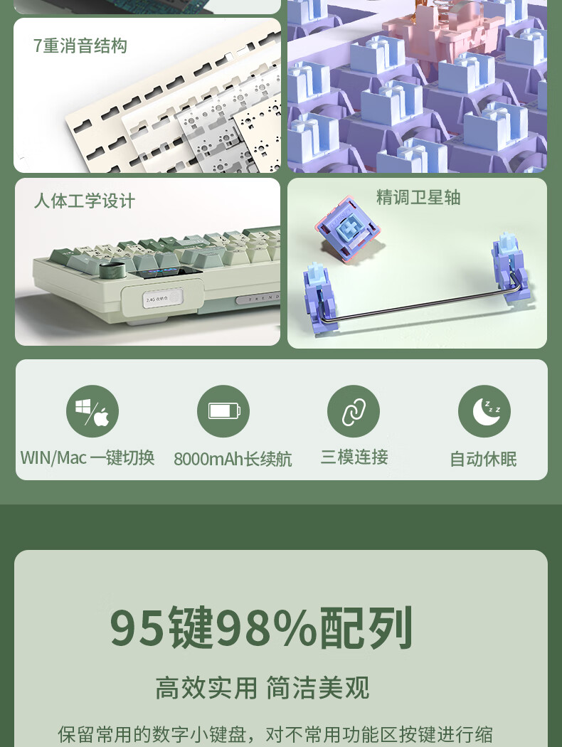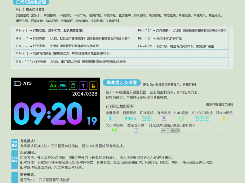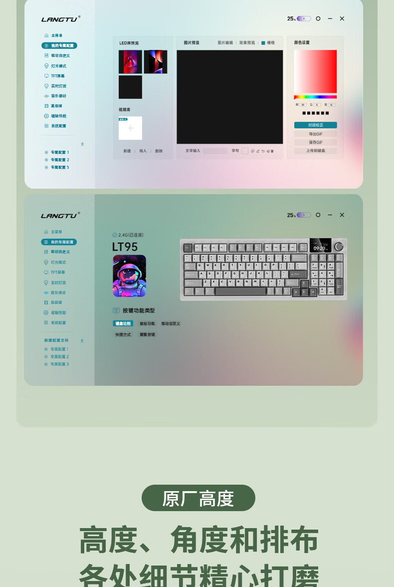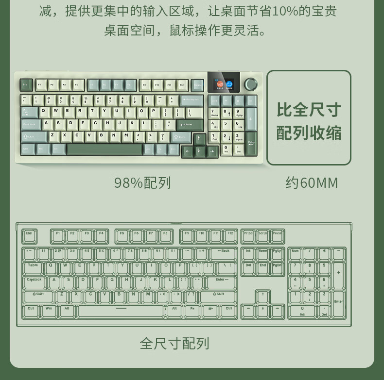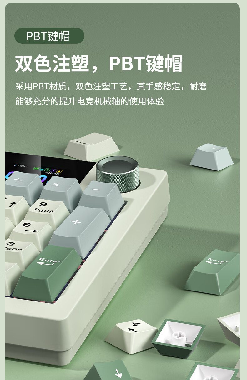 商品名称:狼途LT95翠微 有线/无线/蓝牙三模机械键盘 Gasket结构 RGB灯效 液晶彩屏 马卡龙轴