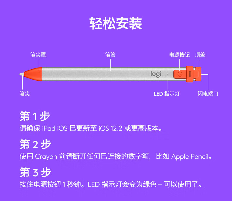 商品名称:罗技(Logitech)iP10 数字笔 IPAD第六代 平板电脑 Apple Pencil技术 数字笔 触控笔 手写笔