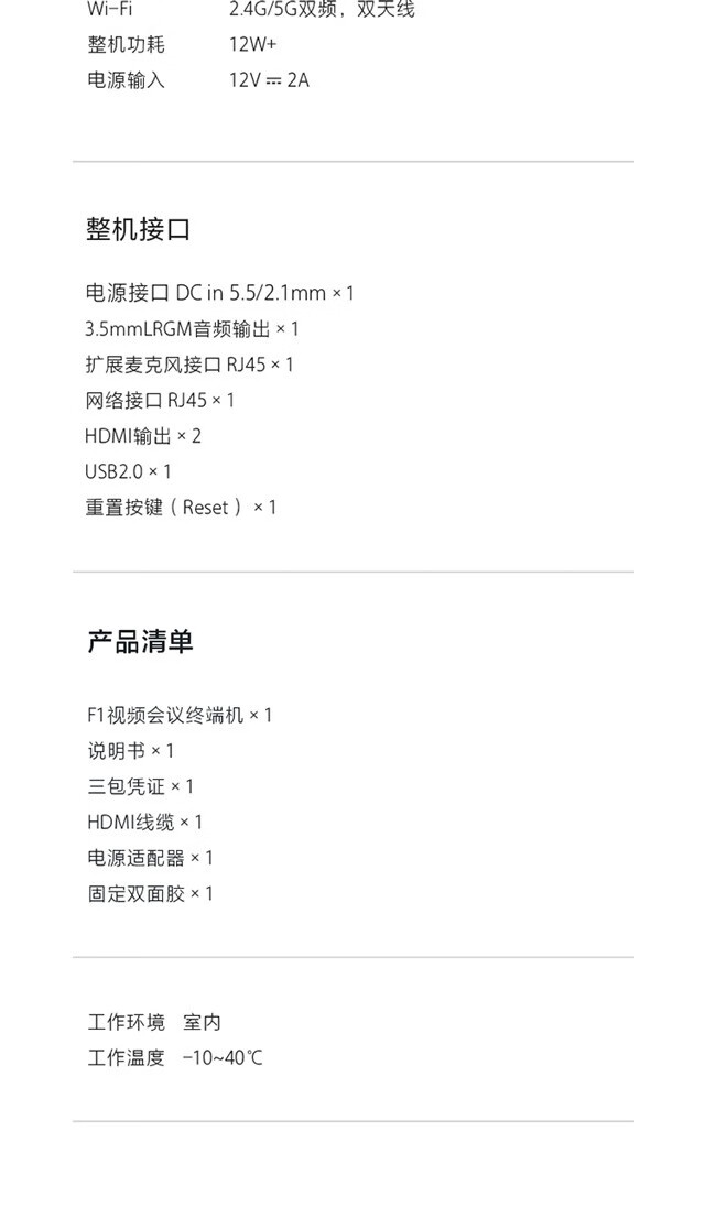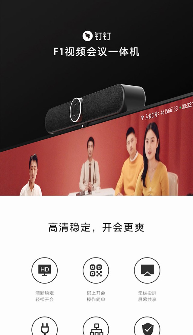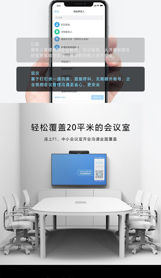 商品名称:钉钉F1智能视频会议一体机 高清相机视频会议摄像头终端支持多种画面布局 远程会议企业培训办公教学 F1标配+专属扩展麦