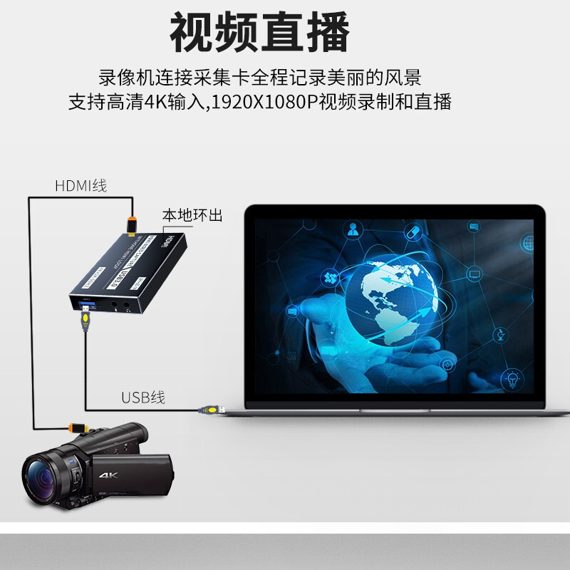 商品名称:晶华 HDMI视频采集卡高清4K环出 笔记本电脑相机手机switch游戏ps4直播录制HDMI转USB采集盒 黑色 Z812-A