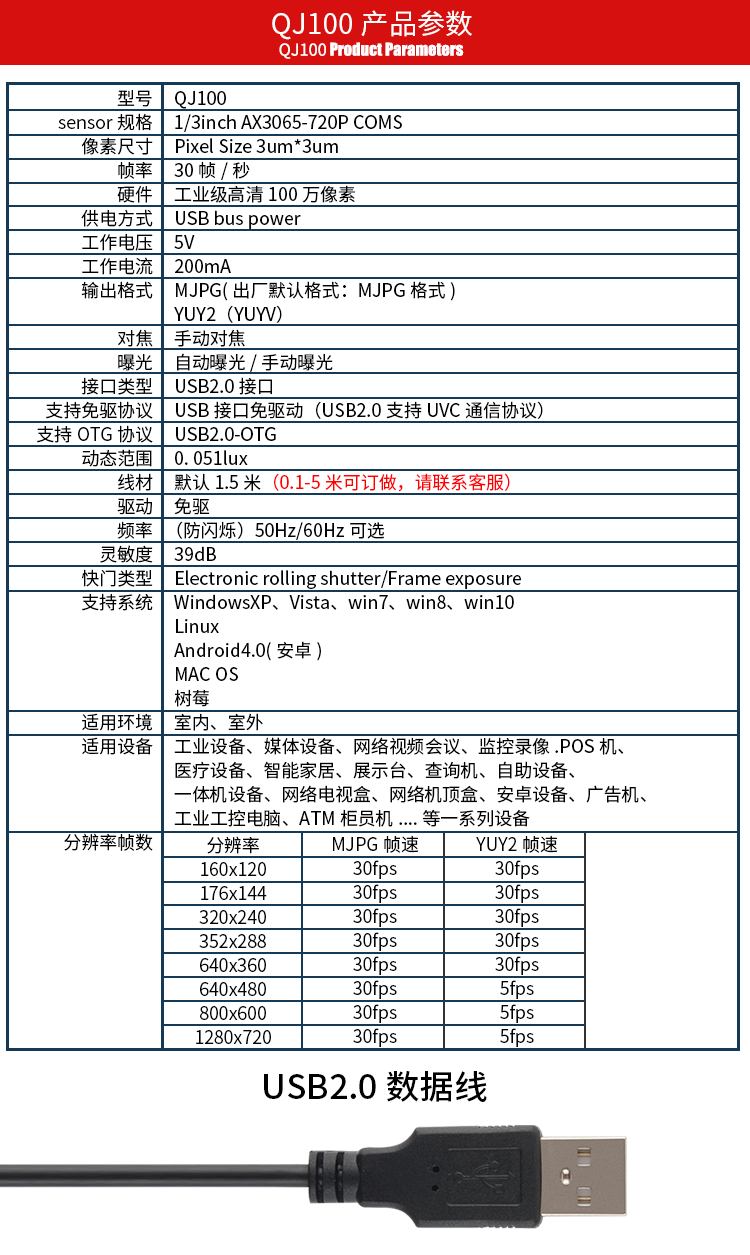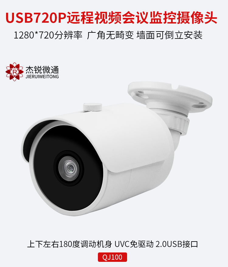 商品名称:杰锐微通防水室外广角150度高清台式笔记本教学监控录像视频会议摄像头USB免驱动720P树莓派安卓 QJ100_2.9mm_110度无畸变