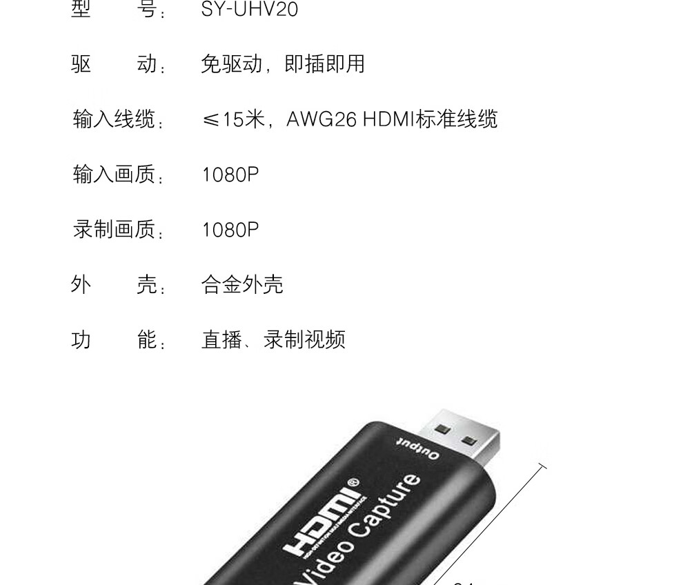 商品名称:时雨(SIYUNR)USB转HDMI转换器 视频采集卡 switch游戏高清直播录制ps4/ps5/摄像机笔记本电脑机顶盒采集盒