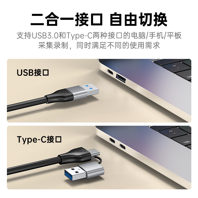 商品名称:整电 HDMI视频采集卡4K输入 适用Switch/PS5笔记本电脑手机相机抖音直播 USB/Type-C双输出录制盒1080P采集