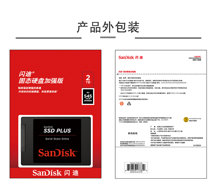 商品名称:闪迪(SanDisk)2TB SSD固态硬盘545MB/s读速性能加强版SATA接口台式机DIY组装笔记本扩容存储稳定电脑大容量存储