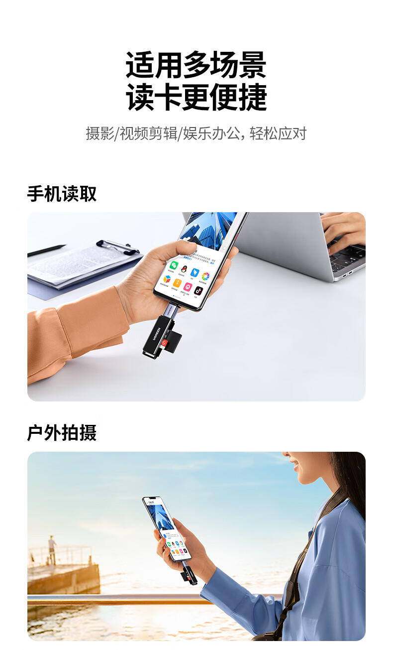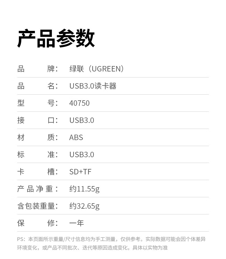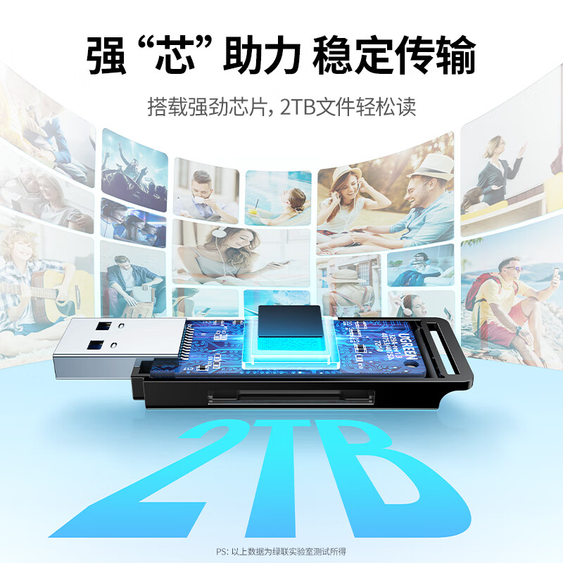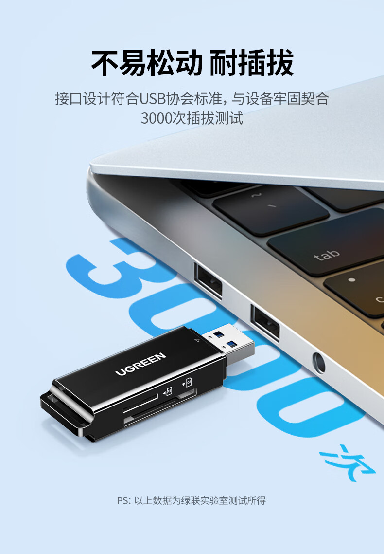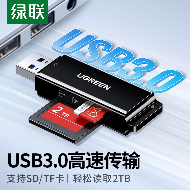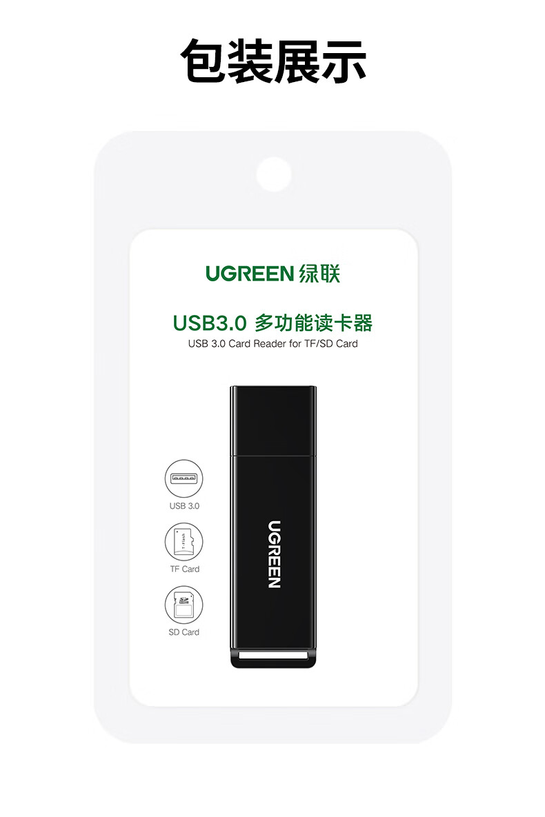 商品名称:绿联USB3.0高速读卡器 SD/TF内存卡读卡器 支持相机单反手机电脑行车记录仪监控无人机储存卡读卡器
