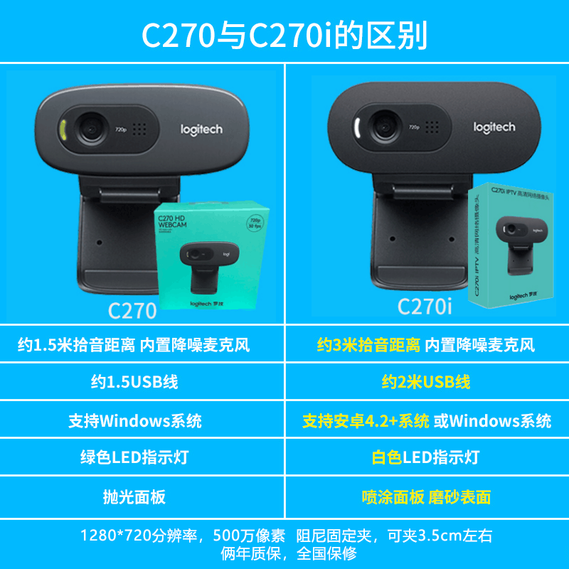 罗技(Logitech) C270i高清摄像头 USB电脑笔记本台式机视频会议直播摄像头带麦克风网课 电视视频网课摄像头入门款黑灰色